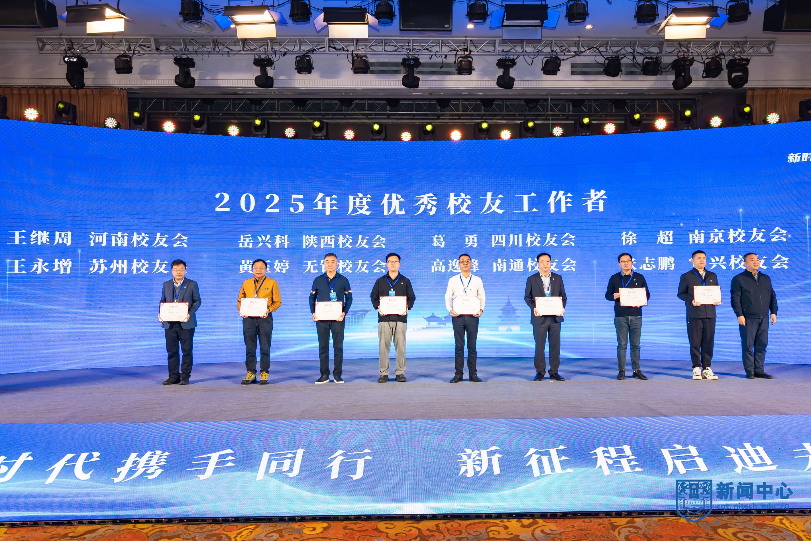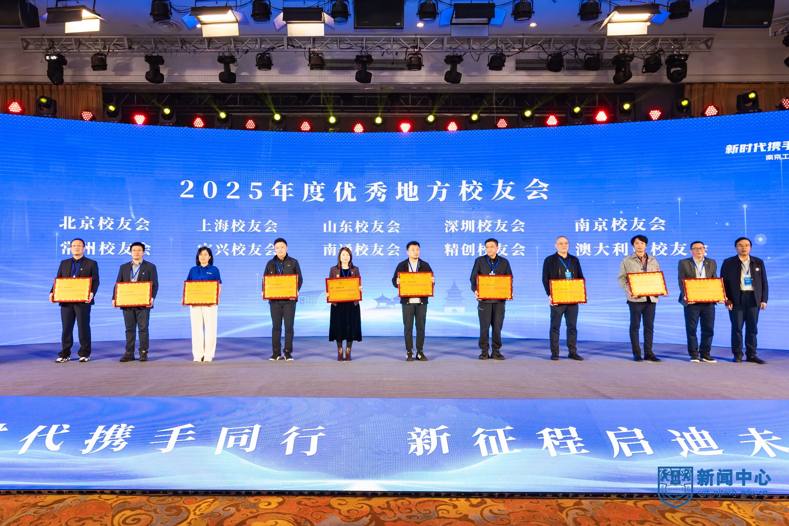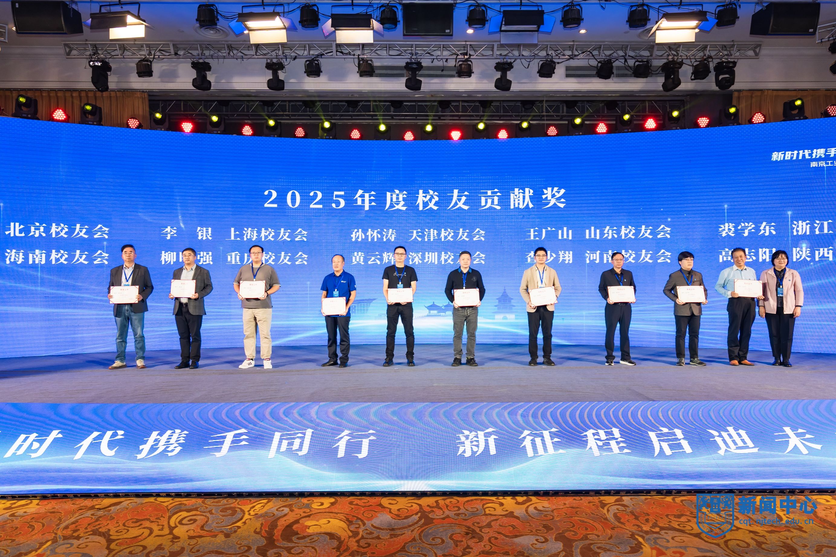 顾学红宣读《关于表彰南京工业大学校友会2025年度“特殊贡献奖”“优秀地方校友会”“优秀校友工作者”和“校友贡献奖”的通知》。校领导分别为获奖先进集体和个人颁奖。