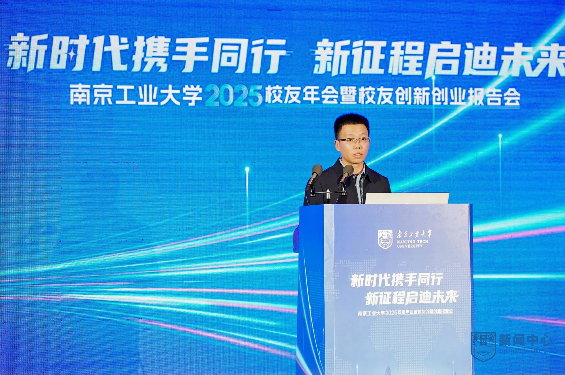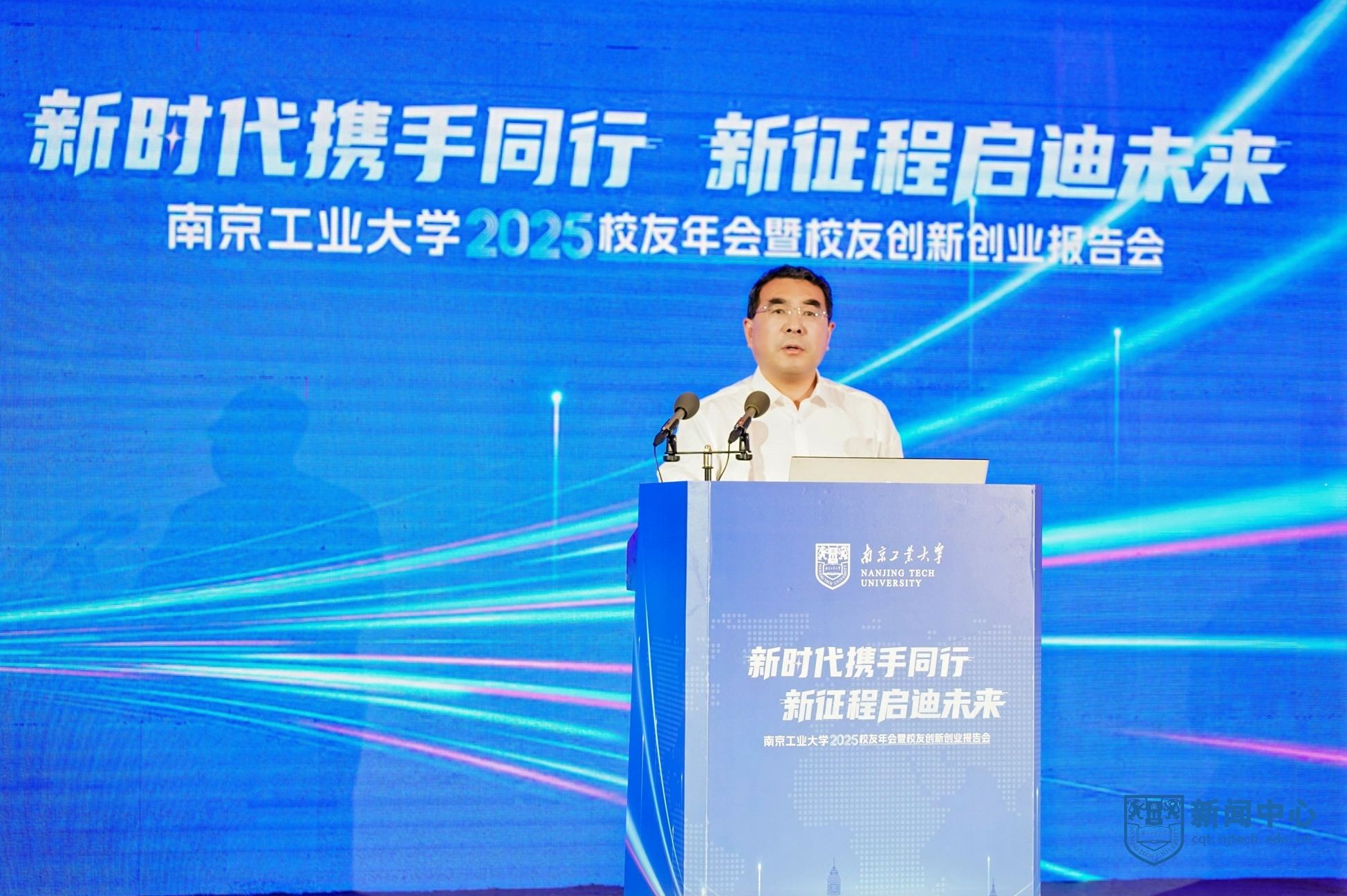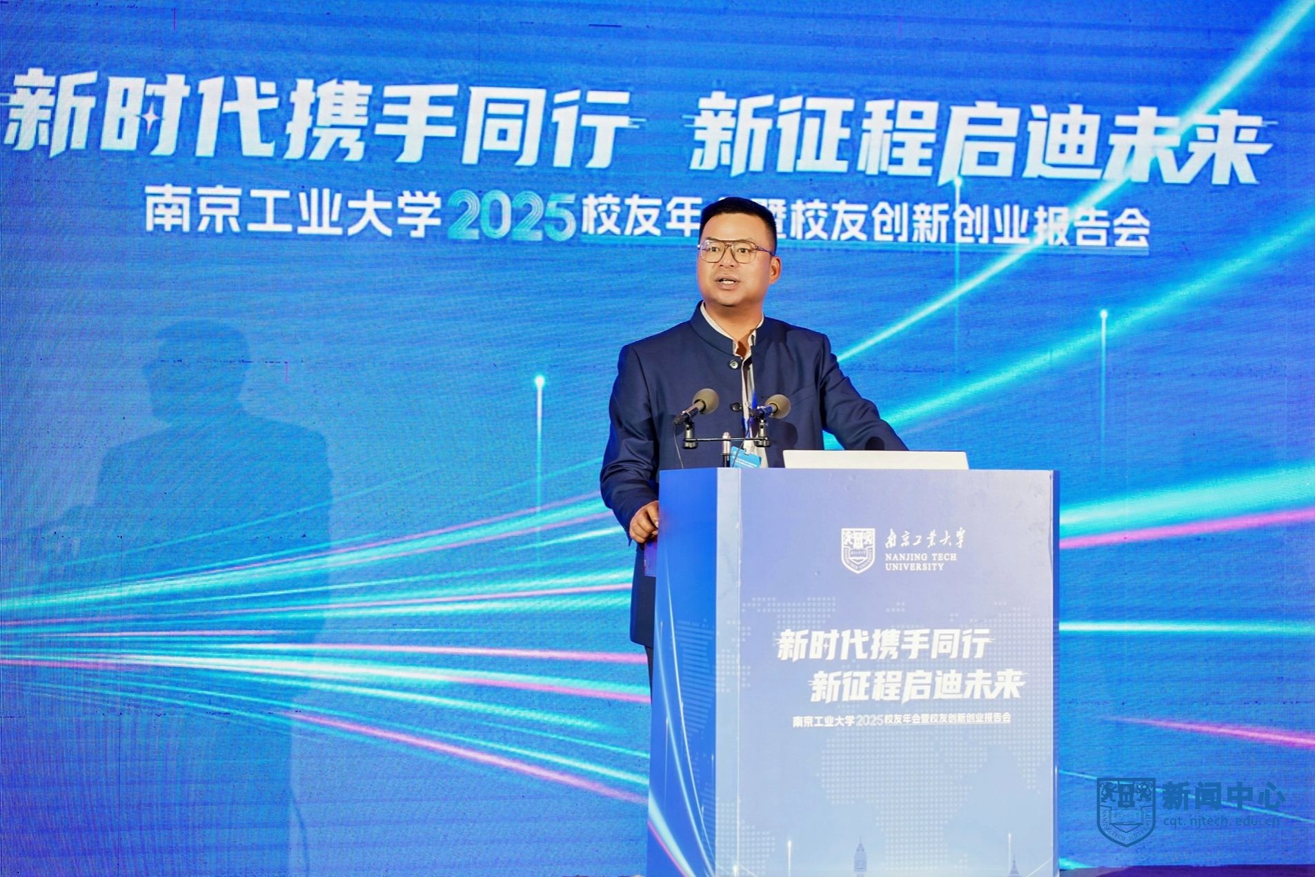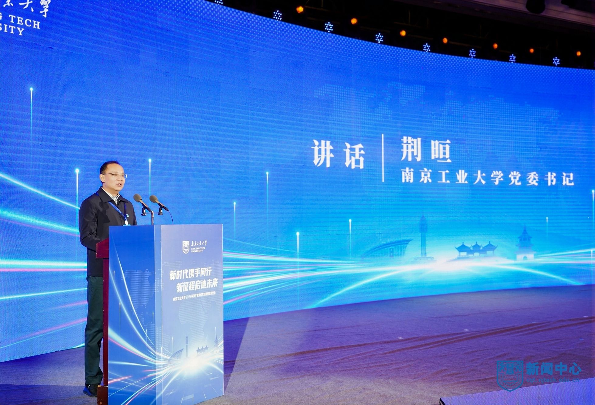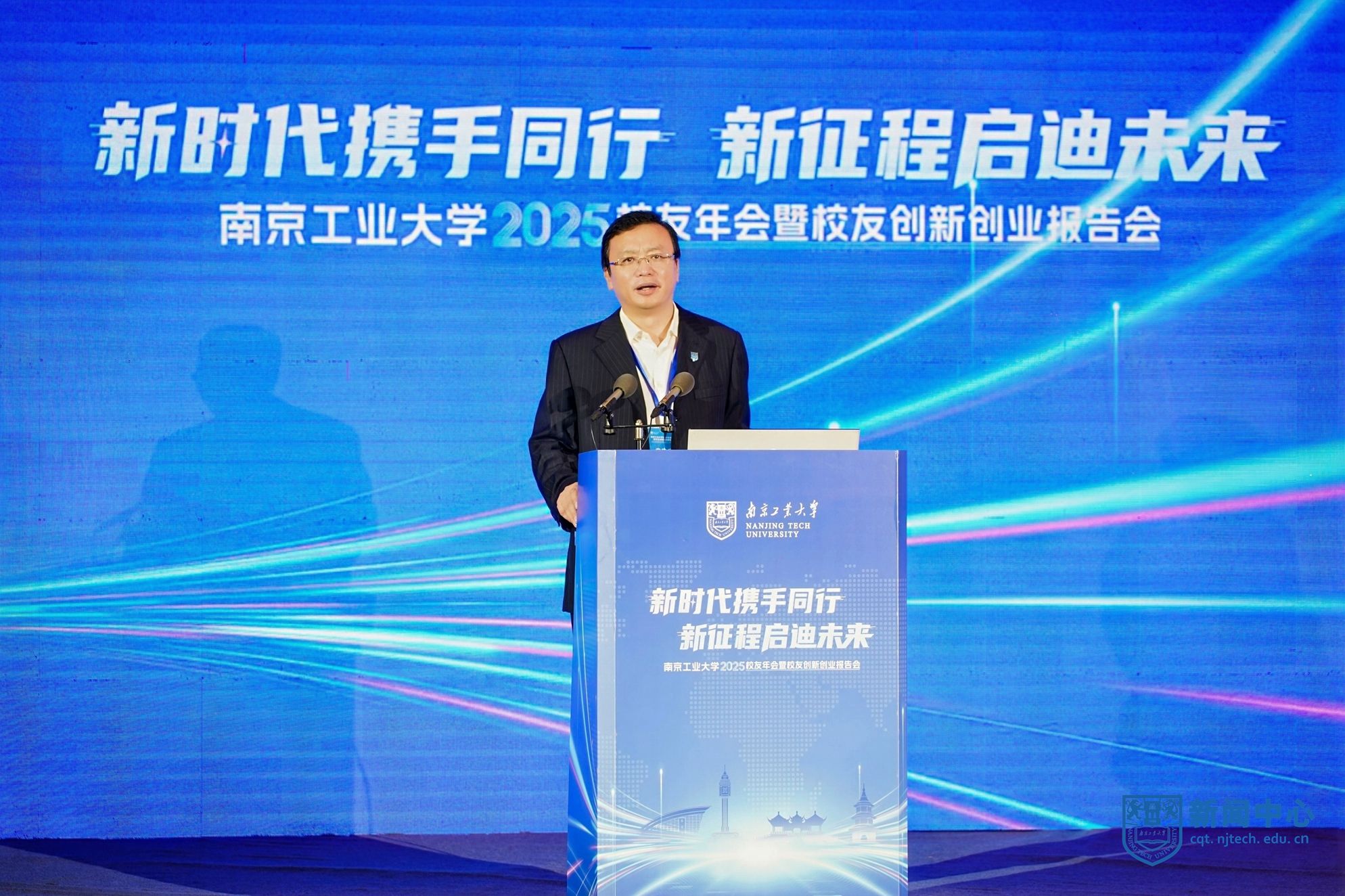 荆晅在讲话中指出,校友与母校是共荣共生的情感共同体、发展共同体。他围绕“共谋创新、共谋发展”这一主题,对校友工作提出三点希望。一是强化使命担当,共筑“校地共生”创新生态。希望广大校友继续发挥在各自领域的影响力,积极拓展合作领域,深化协同发展。二是深化产教融合,共塑“双向奔赴”合作格局。学校正处于一流学科创建的关键阶段,希望校友们以多种形式回归母校,母校也将积极对接相关产业与校友企业,资源共享、优势互补。三是优化校友服务,共建“活力迸发”家园港湾。学校将持续完善校友服务体系,积极为校友回馈母校、服务社会提供支持。期待与各位校友同心筑梦、携手前行,共同谱写母校发展的崭新篇章,共创更加美好的未来。