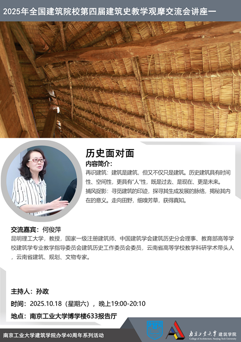 报告人简介:何俊萍,昆明理工大学,教授,国家一级注册建筑师、中国建筑学会建筑历史分会理事、教育部高等学校建筑学专业教学指导委员会建筑历史工作委员会委员,云南省高等学校教学科研学术带头人,云南省建筑、规划、文物专家。