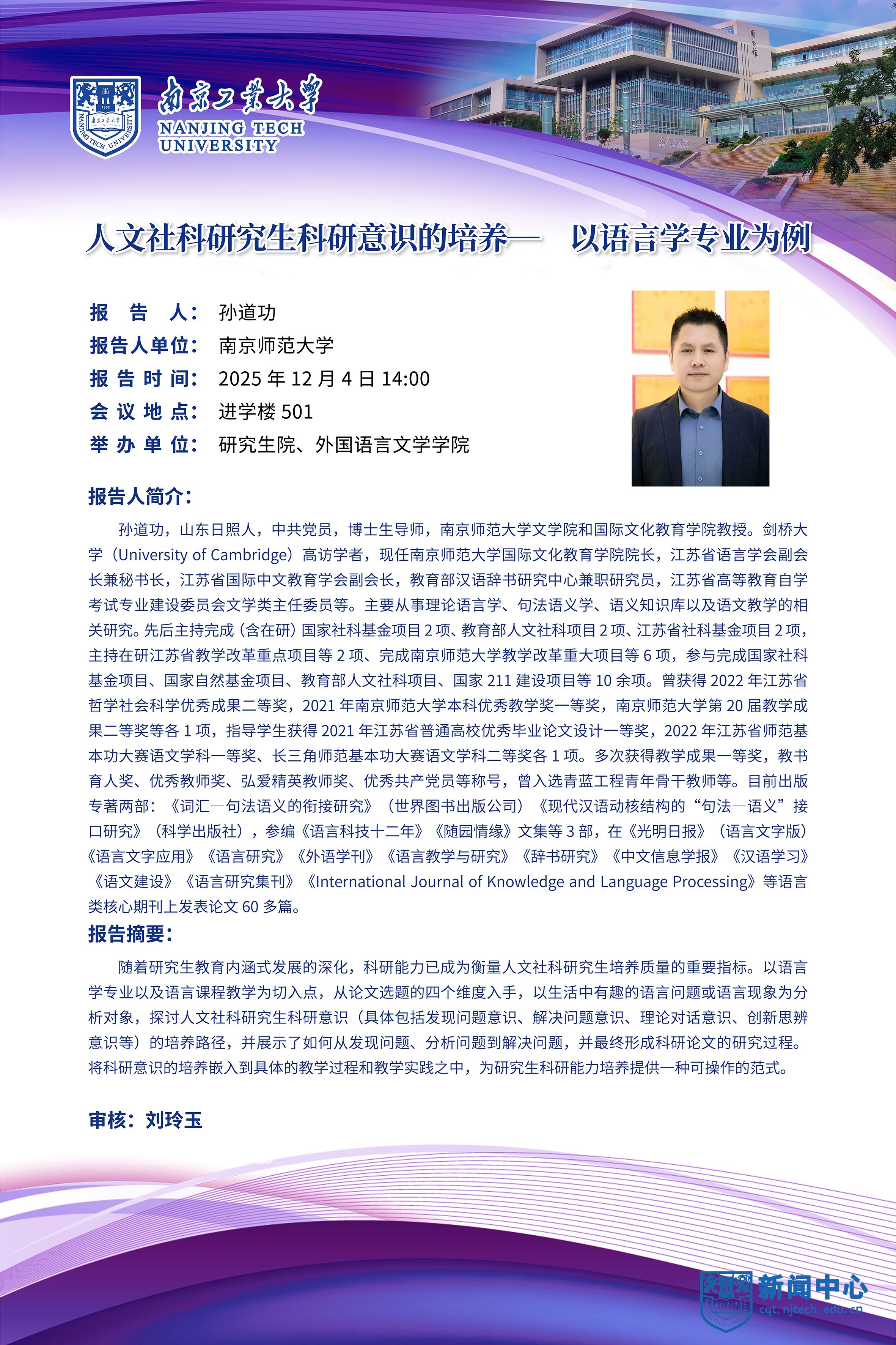 报告题目:人文社科研究生科研意识的培养——以语言学专业为例