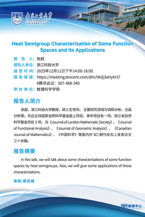 张超,浙江科技大学教授,硕士生导师。主要研究领域为调和分析、泛函分析等。先后主持国家自然科学基金面上项目、青年项目各一项,浙江省自然科学基金项目3项。 在《Journal of London Mathematic Society》《Journal of Functional Analysis》《Journal of Geometric Analysis》《Canadian Journal of Mathematics》《中国科学》等国内外SCI期刊杂志上发表论文三十余篇。