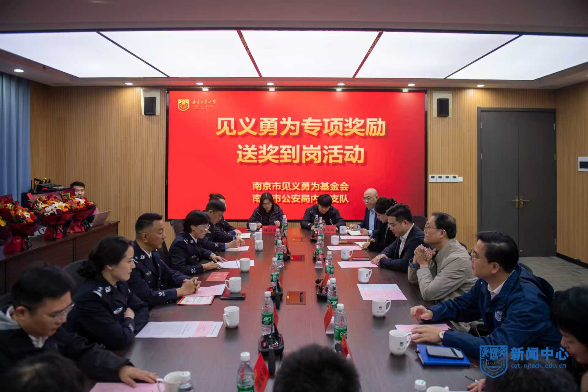为弘扬见义勇为精神,10月28日上午,南京市见义勇为基金会送奖到校活动在我校应急指挥中心开展。南京市见义勇为基金会副秘书长刘裕平、副校长刘大卫、中国移动南京分公司副总经理赵晟出席活动,活动由南京市公安局内保支队政委杨祎主持。