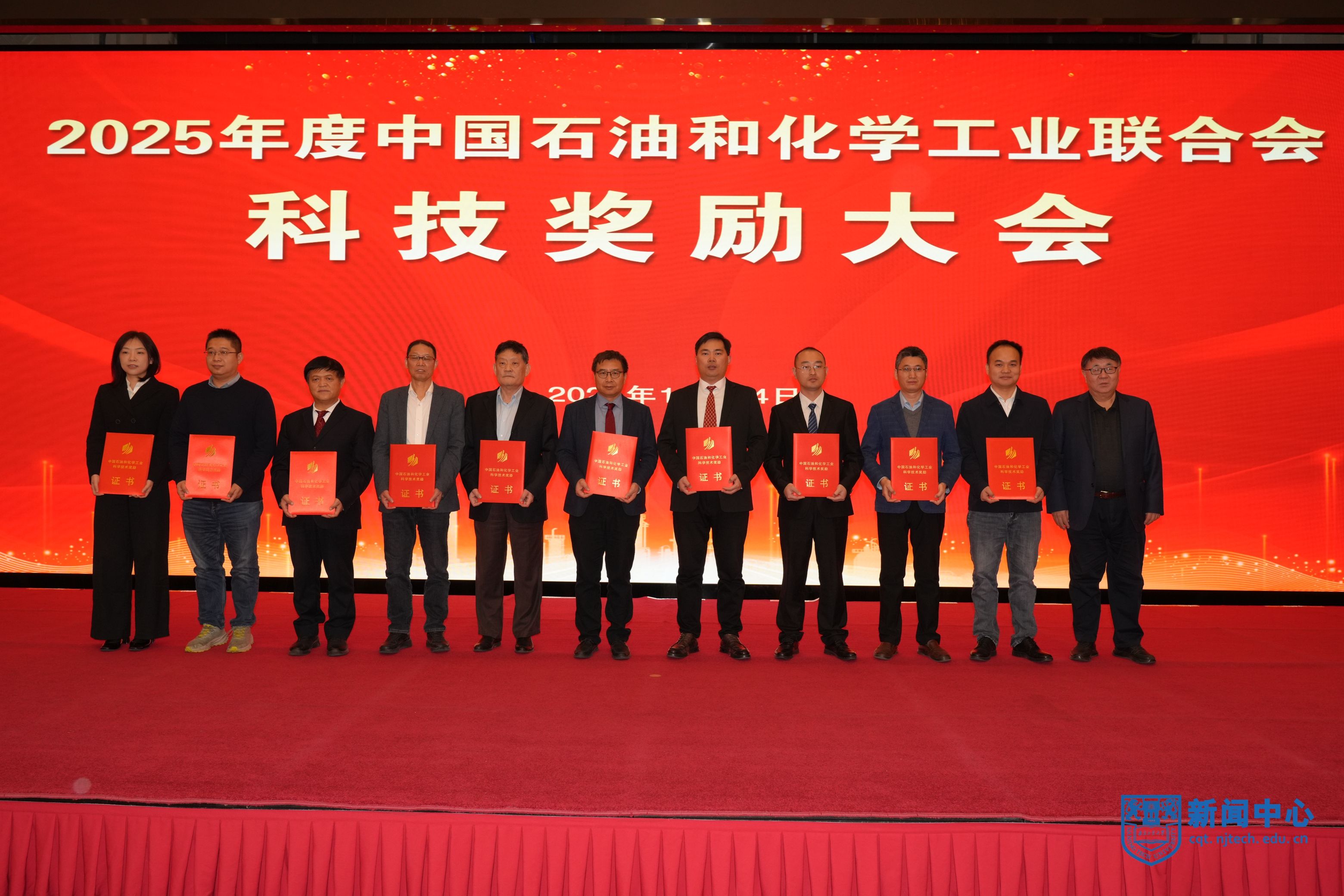 12月24日,2025中国石油和化学工业联合会科技奖励大会在京召开,会上表彰了2025年度中国石油和化学工业联合会科学技术奖获奖单位和个人,我校共获3项。我校一等奖获奖者代表上台领奖。